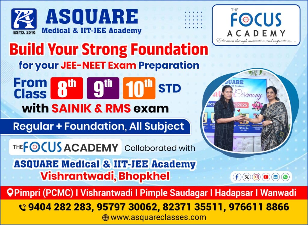Conveniently located in the heart of Pune, ASQUARE Classes is easily accessible from key areas, making daily commutes stress-free for both students and parents. The institute maintains a safe, distraction-free, and disciplined environment – ideal for focused learning.